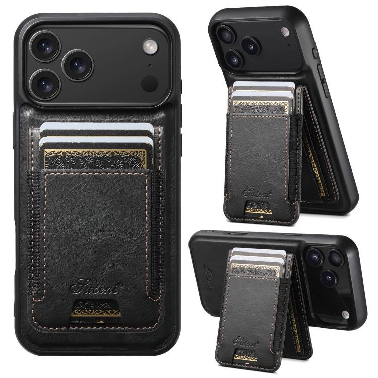 Suteni M3 Card Bag MagSafe Cowhide Texture Leather Phone Case