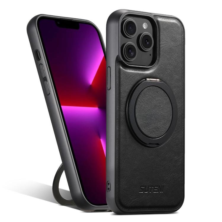 Suteni G3 Carbon Fiber Leather 360 Rotation Holder MagSafe Phone Case