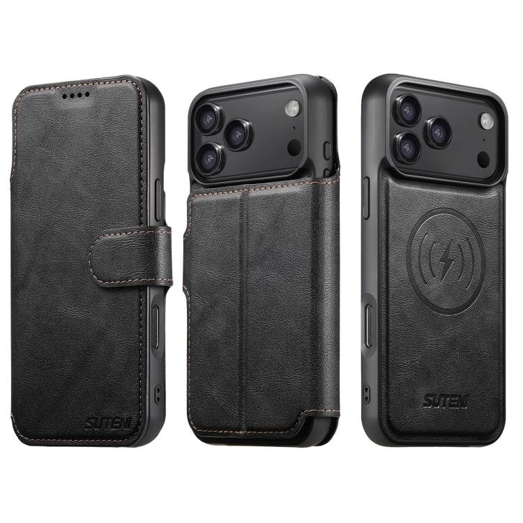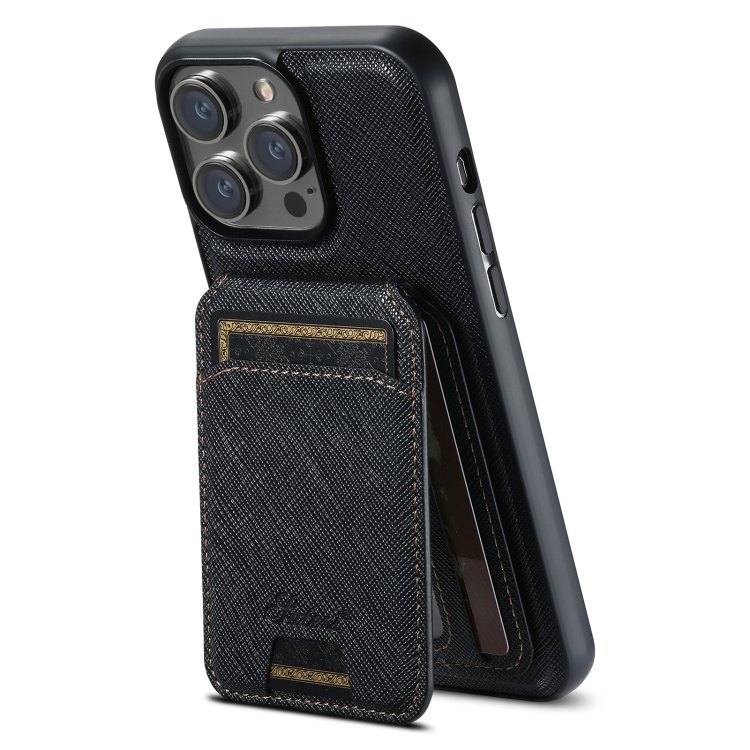 Suteni H17 Cross Grain Leather MagSafe Detachable Wallet Phone Case