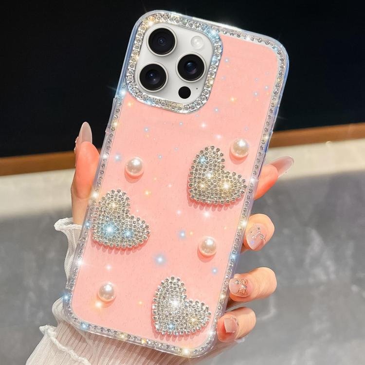 Diamond Glitter Pearl Heart Four-Corner Shockproof Phone Case, For iPhone 17 Pro Max, For iPhone 17 Pro, For iPhone 17, For iPhone Air, For iPhone 16 Pro Max, For iPhone 16 Pro, For iPhone 16 Plus, For iPhone 16
