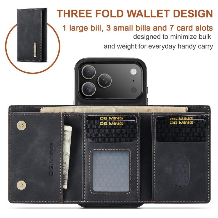 DG.MING M1 Series 3-Fold Multi Card Wallet Leather Phone Case, For iPhone 17 Pro Max, For iPhone 17 Pro, For iPhone 17, For iPhone Air, For iPhone 16e, For iPhone 16 Pro Max, For iPhone 16 Pro, For iPhone 16 Plus, For iPhone 16