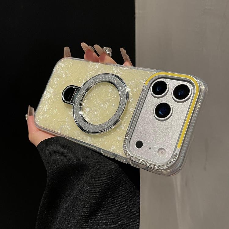 Gilded Colorful Shell Patterned TPU+IMD Phone Case with Glitter Magnetic Holder, For iPhone 13 Pro