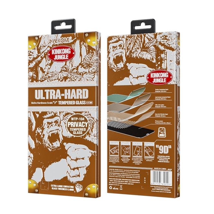 Protect your iPhone 15 Pro with the WK WTP-104 Jungle Series Kinkong Kyanite Ultra-hard 9D Curved Privacy Aluminum Glass Film. This premium tempered glass screen protector offers unparalleled durability and remarkable clarity, ensuring your device looks its best while staying safeguarded from daily wear and tear.